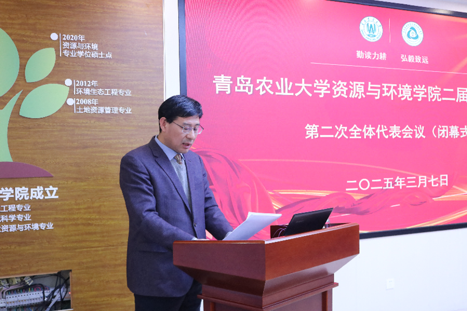闭幕式上,与会代表表决通过了会议的各项相关决议,顺利完成了会议的各项议程。学院党委书记史越清作总结讲话,他强调新的一年里,学院将在校党委的正确领导下,以习近平新时代中国特色社会主义思想为指导,紧密围绕学校工作大局,坚持党建统领,积极贯彻新发展理念,适应新发展阶段,激发新发展活力,以更开阔的视野、更宽广的胸怀、更执着的追求、更务实的奋斗,抢抓机遇、开拓进取、齐心协力、奋发有为,共同创造资环学院更加美好的明天。