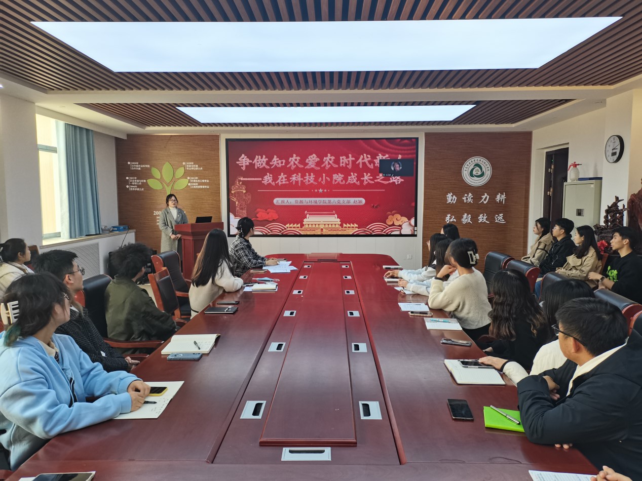 赵颖以科技小院的“强农兴农小院大使命”为切入点,分享了自己在导师陈延玲副教授的指导下,从城市到乡村,从实验室、课堂到田野,从“门外汉”到知农爱农助力乡村振兴的时代新人转变的成长历程,通过为实现农业技术推广服务举办田间课堂、入村培训、发布科普短视频等活动讲述了自己如何在科技小院一步步厚植了爱农情怀,练就了兴农本领的故事。赵颖号召支部研究生党员们要勤学善思,用好专业知识,将课堂学习和实践紧密结合起来,不怕吃苦、甘于奉献,志存高远、脚踏实地,在实践中强党性、增智慧、长本领,积极投身乡村振兴,真正做到爱农助农惠农,为乡村振兴事业发展贡献青春力量。