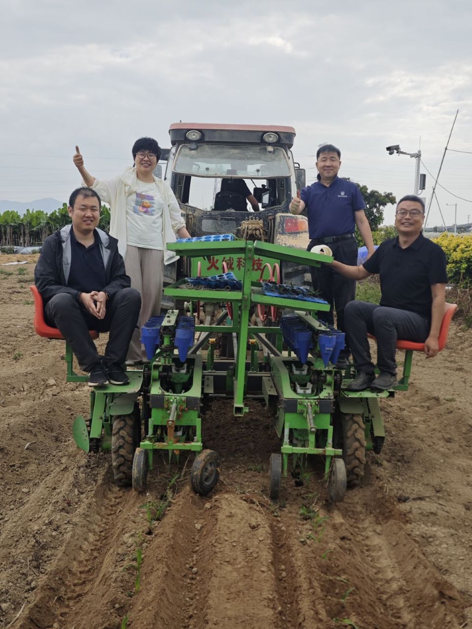 玉米机械化移栽试机。