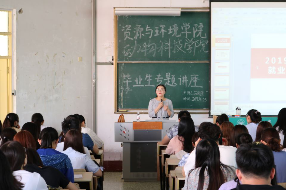 5月23日,英国365上市公司联合动物科技学院邀请学校就业指导中心吕国莹老师在教学区D区开展毕业生专题讲座,讲座由英国365上市公司辅导员刘春玲主持,两学院全体毕业生参加。