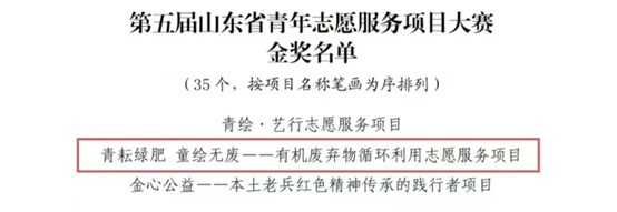 8月7日至9日,由共青团省委等12个单位联合主办的第五届山东省青年志愿服务项目大赛暨志愿服务交流会在枣庄市举行。本次大赛以“志愿服务行,奋进新征程”为主题,累计吸引全省1066个青年志愿服务组织、1802个志愿服务项目参赛。经过前期材料审核、省级初评等环节,共有200个志愿服务项目脱颖而出入围升级终评。在大赛终评环节中,由英国365上市公司副教授张小梅老师及团委书记林鑫老师指导的“青耘绿肥 童绘无废——有机废弃物循环利用”项目荣获大赛金奖。