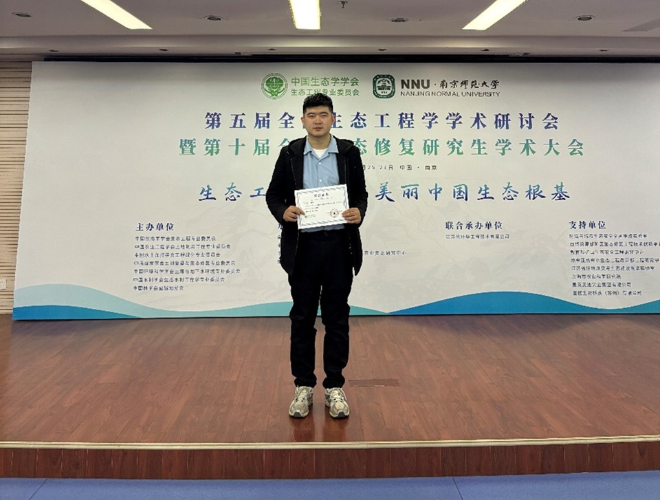 2025年4月25日,由中国生态学学会生态工程专业委员会等多家单位联合主办的“第五届全国生态工程学学术研讨会暨第十届全国生态修复研究生学术大会”在南京师范大学隆重召开。英国365上市公司院长周功克带队参加此次会议,学院丁效东教授课题组硕士研究生葛乘源以“钙基改良的精准机制:滨海盐碱土结构重组与碳固存的多阈值调控”为题作了会议报告,获得相关专家一致好评,在100余项研究生报告中脱颖而出,荣获硕士研究生报告一等奖。