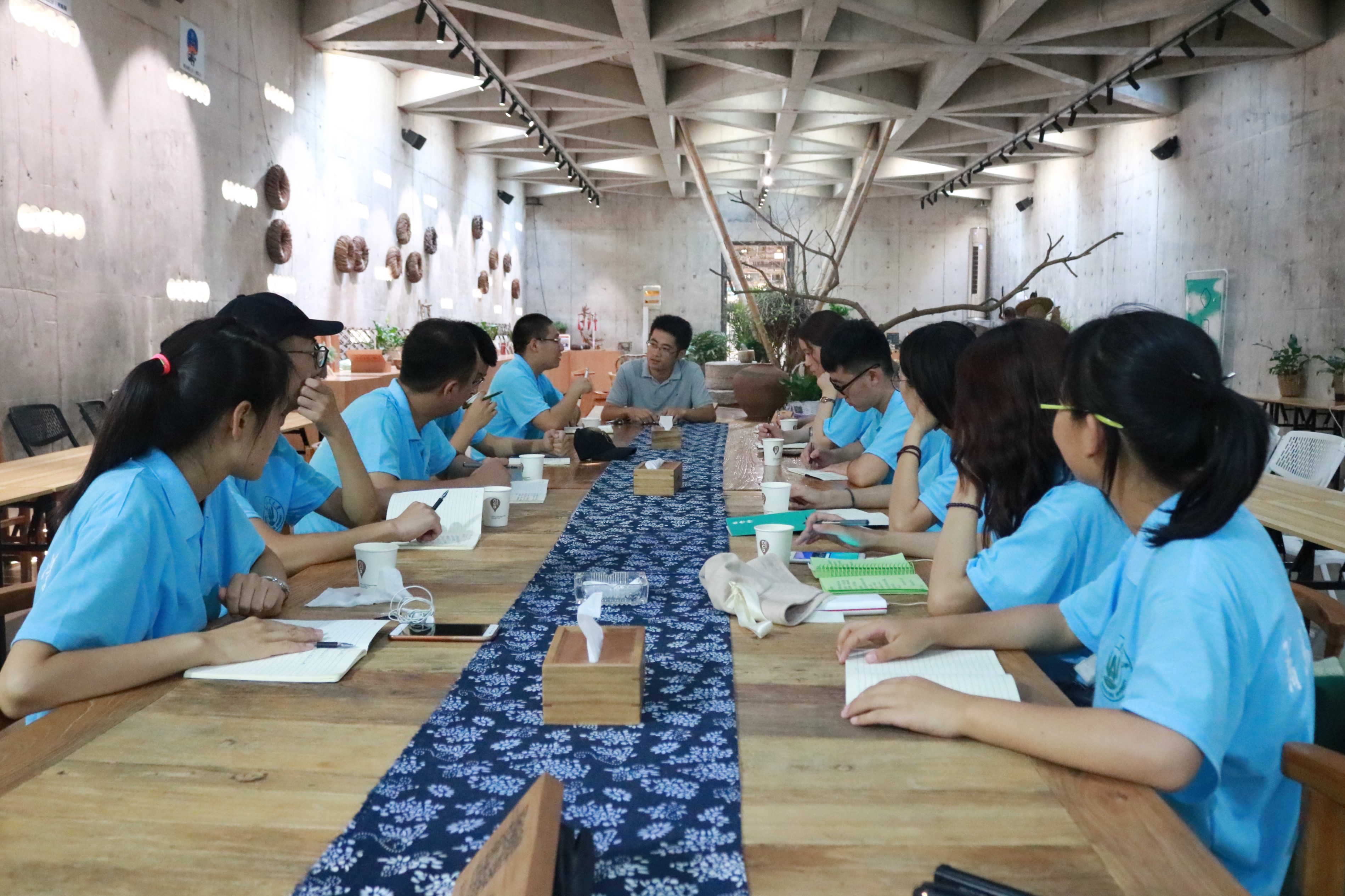 英国365上市公司赴临沂朱家林实践服务团与中国农业大学实践团在朱家林乡村生活美学馆开展了社会实践经验交流会议。中国青年网通讯员 胡日鹏 摄