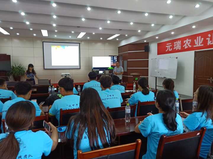 下午,实践团队到达社会实践的第一个目的地——山东省元瑞农业科技有限公司。在公司人员的介绍下,首先了解了元瑞公司最新的滴灌技术、管理模式及后续农业固废的处理方式。元瑞公司的菅增平老师利用PPT,亲自为我们讲解相关技术,并回答了同学们提出的相关问题。