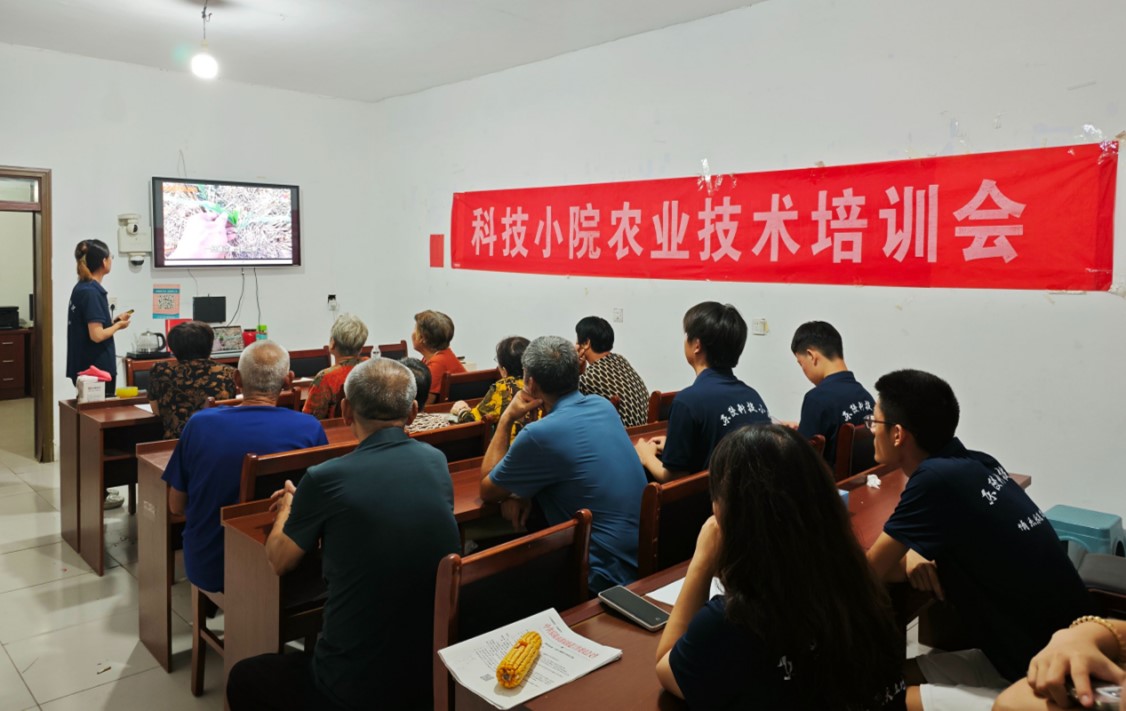 新时代的乡村振兴,最重要、最关键的就是人才振兴。8月5日-8月10日,志愿服务团以乡村人才振兴为出发点,发挥科技小院的人才培养功能,对科技小院新生、基层干部群体、普通农户开展相关培训工作。本着“授人以鱼不如授人以渔”的思想,志愿服务团成员推动人才培训模式从单向的“输血式”模式向提升内生动力的“造血式”转变,通过开展田间指导和农民培训班,将先进的农业技术带到农户家里,开展面对面的智力帮扶,全面提高农民的综合素质和劳动技能,有效助力当地农户的科学种田水平。先后在郭家街道南夏村开展了小麦-玉米病虫害防治农民技术培训会和农村生态环境保护主题宣讲,通过教农民辨别各种病虫害,指导他们科学用药,提升农民的种植和管理水平。在化楼镇郭寺村开展了“土壤医生”农技知识培训,致力培育一批“慧”种地的新型科技农民,激发农户内生动力。