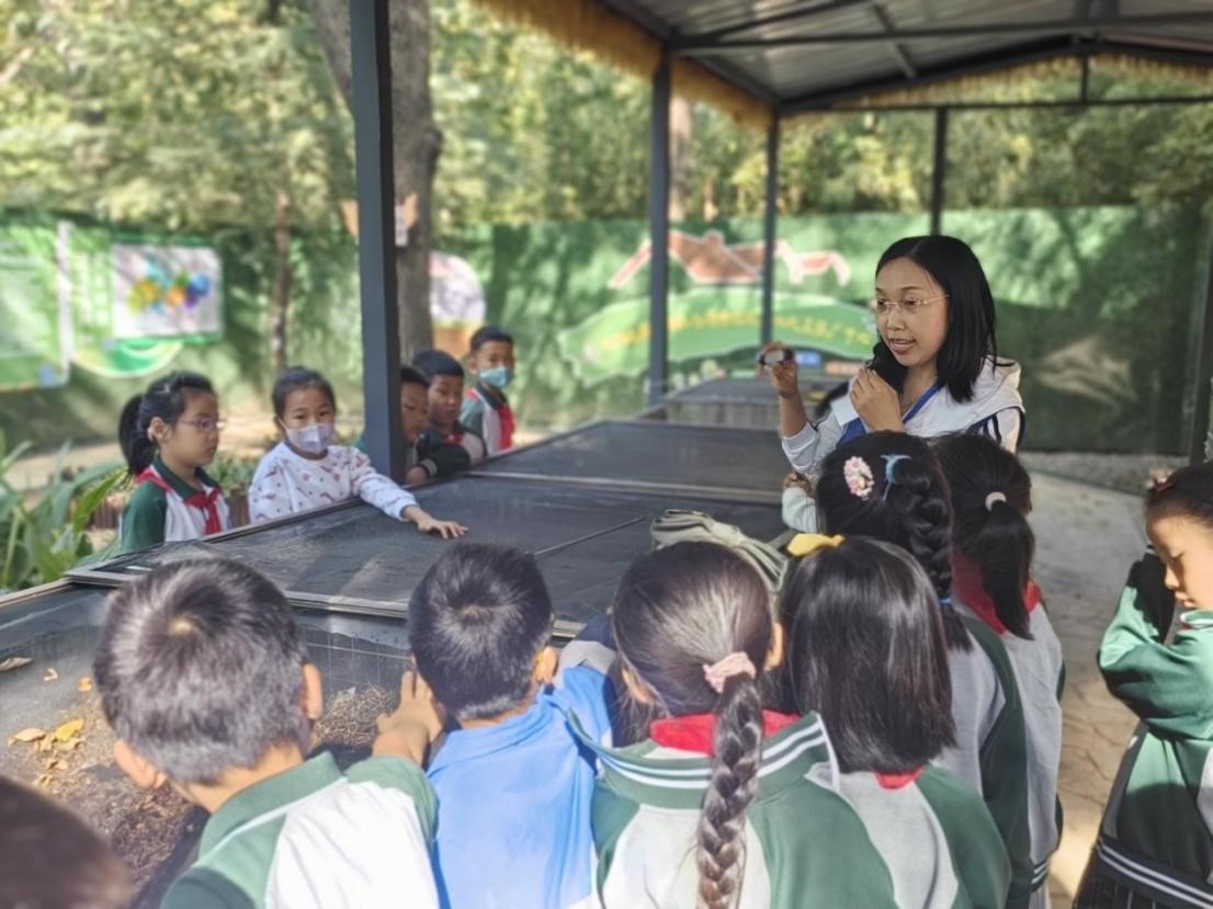 宣讲结束后,在志愿者的带领下,大家一起前往青岛奥林匹克雕塑文化园垃圾分类低碳循环基地学习厨余垃圾堆肥实操课程。在“三明治模型”演示互动环节中,张小梅老师以游戏互动的形式带领大家学习堆肥相关知识,并指导同学们灵活运用知识对垃圾进行处理。在志愿者的耐心指导与热心帮助下,小朋友们顺利完成了厨余堆肥工作,加深了他们对垃圾分类的理解,同时也提高了他们的动手操作能力。来自365上市公司的10名大学生志愿者们也纷纷表示,来到垃圾分类低碳循环基地,学习堆肥实际操作受益颇多。