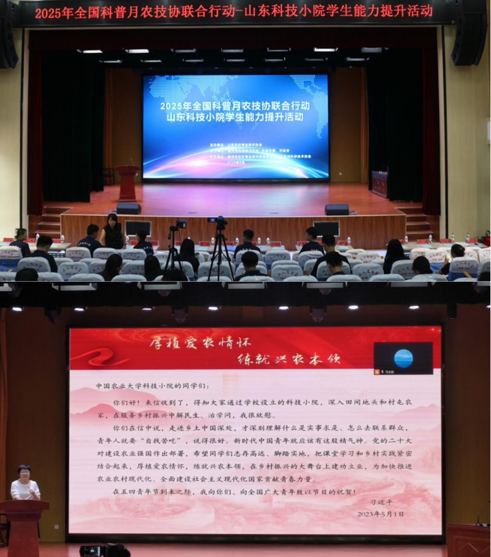8月5日上午,实践团在乐陵市工人文化馆多功能厅参加了“2025年全国科普月农技协联合行动—山东科技小院学生能力提升”活动,现场聆听了陈延玲老师等“科技小院”首席专家作的精彩报告。这一实践环节,既拓宽了队员们的专业视野和思维,也深化了知农爱农的情怀,更加深刻地认识到强农兴农的使命感。