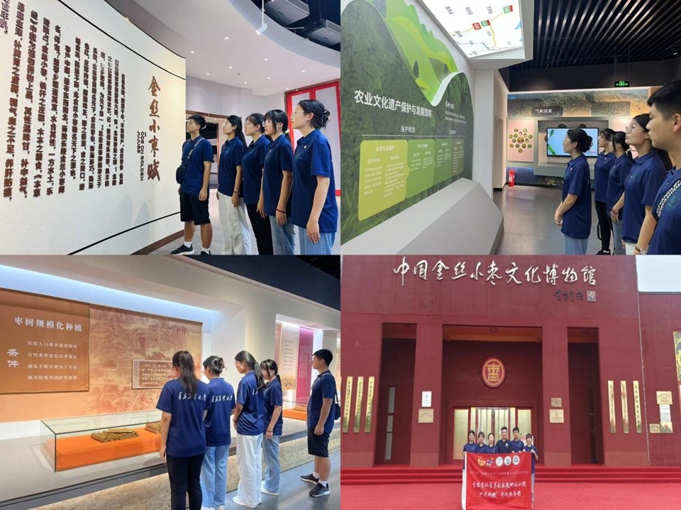 8月5日下午,实践团走进中国金丝小枣文化博物馆,体验和感受传统农耕文化与红枣产业交融共生发展的轨迹,积极探索乡村振兴的实施路径。在馆内,队员们沿着时间脉络,了解红枣的文化内涵与历史渊源,学习其精神传承、文化价值及产业发展模式,探索“文化+产业”双向赋能的农业可持续发展之路。曾经的“救命粮”,已然成为产业发展、乡村振兴的“致富果”,有力彰显了当地的农业特色。从科技小院扎根乡土服务,到金丝小枣文化沉淀发展,在乐陵这片充满希望的沃土上,科技与传统正交织出乡村振兴的生动图景。