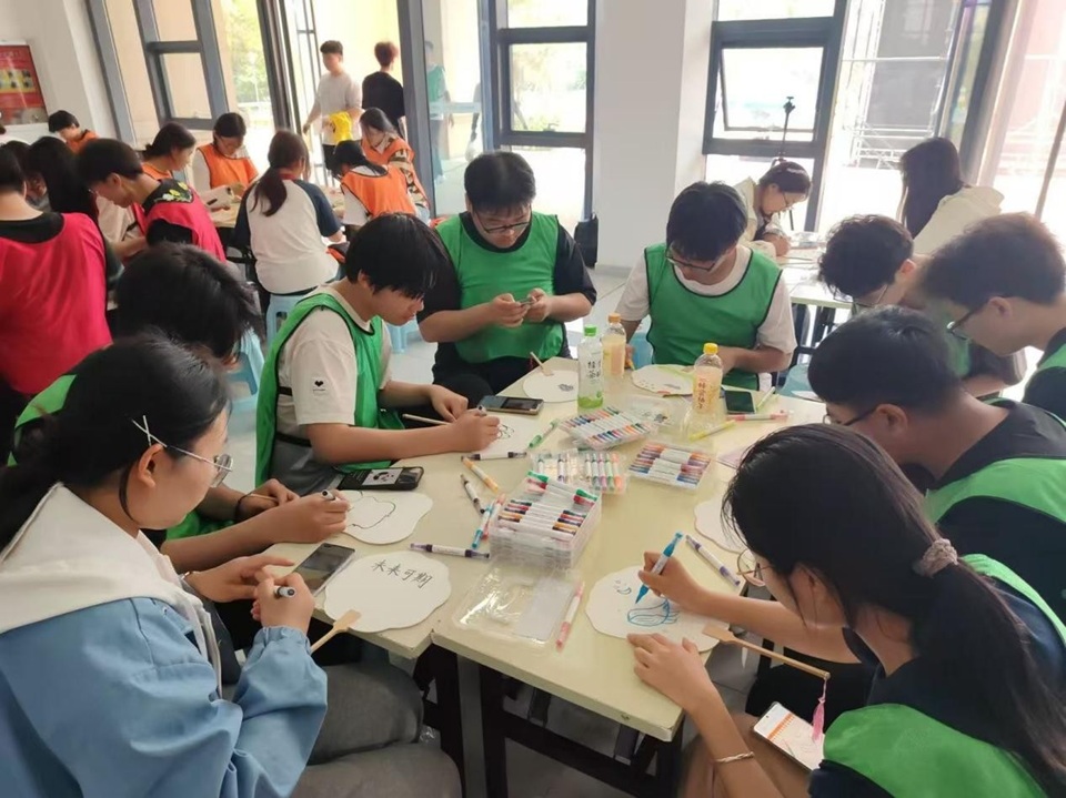 在完成关卡任务的过程中,学生们不仅锻炼了身体,更在互动与挑战中塑造了积极的心理品质。抵达终点后,师生们沉浸式体验了手工绘画、植物拓印等静态疗愈活动,大家用画笔记录心情,将花草拓印在棉布上,在创作中放松身心、留存纪念。