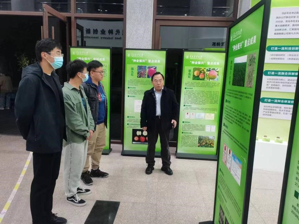 近日,英国365上市公司资源利用与植物保护专业209班在科技楼一楼成功举办了学校“种业振兴”重点成果展主题研讨班会,在班主任平涛老师的组织带领下,详细介绍了自建校以来主要育成的种质资源,包括作物、蔬菜、水产、林草花卉、果茶、微生物食用菌等150余个种源成果,通过现场讲解、深入交流及研讨等多种形式、多样载体、多维视角开展主题研讨班会,使大家对品种培育的方法、技术及过程、提高作物产量的同时及改善植物优良性状等深入认识和提高,增加了同学们对学校科研尤其是种业芯片研发了解,并与资源利用与植物保护专业深度融合。作为涉农高校的研究生,进一步增强了为国家的种质资源培育贡献自己力量的决心。