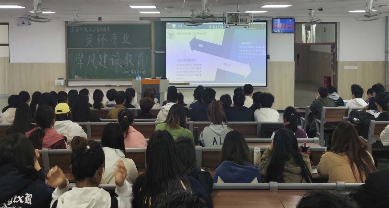 李斌以405分专业第一名考取华中农业大学全日制学术硕士研究生,他以“乐观、交际、上进、自律”为题,讲述了上大学的意义和做好个人大学成长规划的重要性。他根据专业课程分享了自己的学习思维和技巧,结合作为学生干部的过往,分享了兼顾学习和工作的方法,希望学弟学妹要在学习各阶段不断沉淀自己。他将自己的大学比喻成“爬泰山”,让大家更直观地感受学习状态、明确学习目标、提高学习效率,进而实现学业进步。
