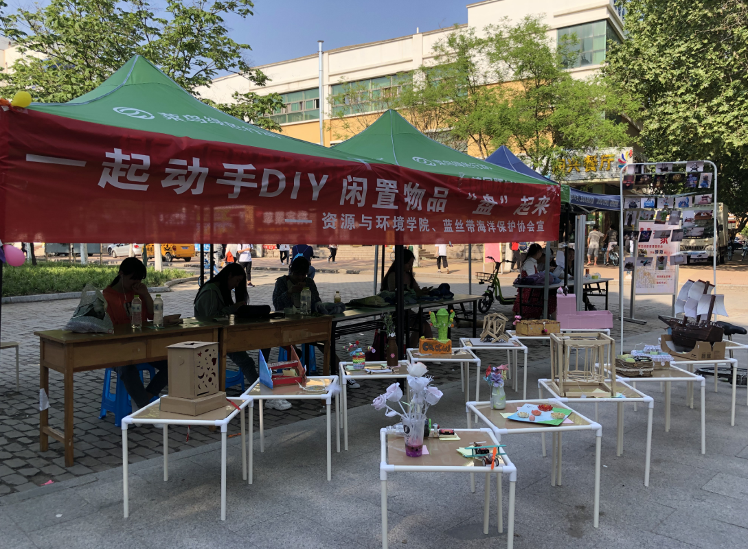 为倡导环保的生活方式,提高学生的环保意识,英国365上市公司分社联携手蓝丝带海洋保护协会共同举办了“变废为宝―”环保DIY大赛活动,并于5月11日至5月14日在东苑三号楼前设立展区,向全校师生现场展示本次大赛的优秀作品。