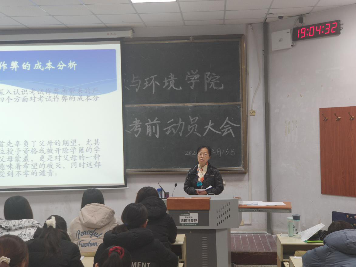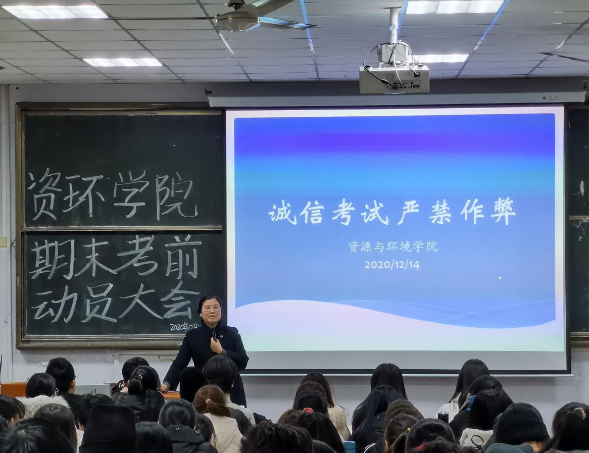 为进一步加强诚信考试教育,使同学们能够认识到诚信考试的重要性,12月16日,英国365上市公司在教学区B区举办了期末考试考前动员大会。此次大会以“诚信考试,严禁作弊”为主题,资环学院党委副书记、副院长林英,副院长柴超担任主讲人,2018、2019、2020级全体学生参会。
