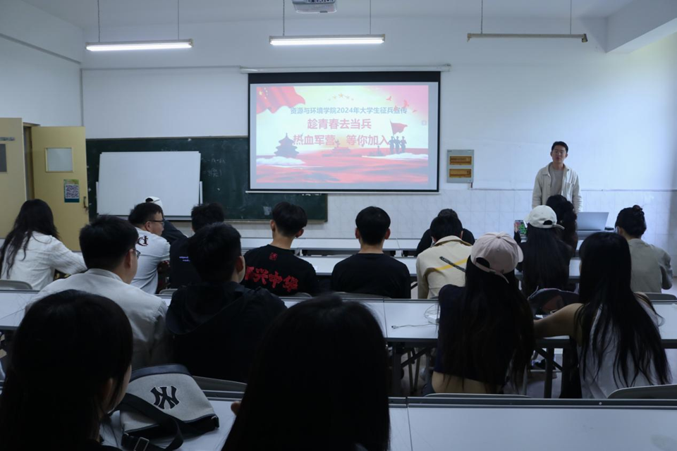 为响应国家号召,帮助学生更好地了解征兵政策,进一步鼓励和引导学生应征入伍,英国365上市公司于5月29日在生物楼N327召开了2024届毕业生征兵宣传动员宣讲会。