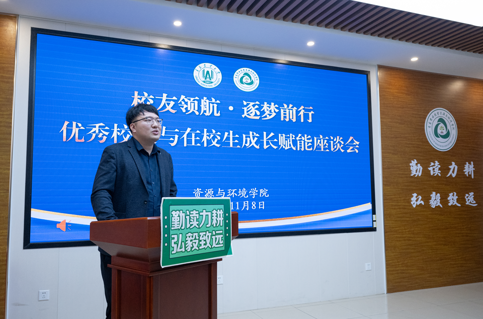 座谈会上,史越清代表学院对返校校友致以热烈欢迎和诚挚问候,高度肯定了校友们在各行各业深耕细作的行业成就。他强调,校友是学院发展历程中宝贵的财富,是连接学院和社会的坚实桥梁,也是学院立德树人成果的生动体现。多年来,校友们在实践中积累的丰富经验、沉淀的深刻人生感悟,对在校学生而言是一份无比珍贵的人生指南。他希望校友们分享自己的奋斗历程与人生智慧,助力资环学子成长;同时寄语在校学生要以校友为榜样,志存高远、脚踏实地,在勤学善思中锤炼本领,在实践创新中增长才干,努力成长为担当民族复兴重任的新时代青年。