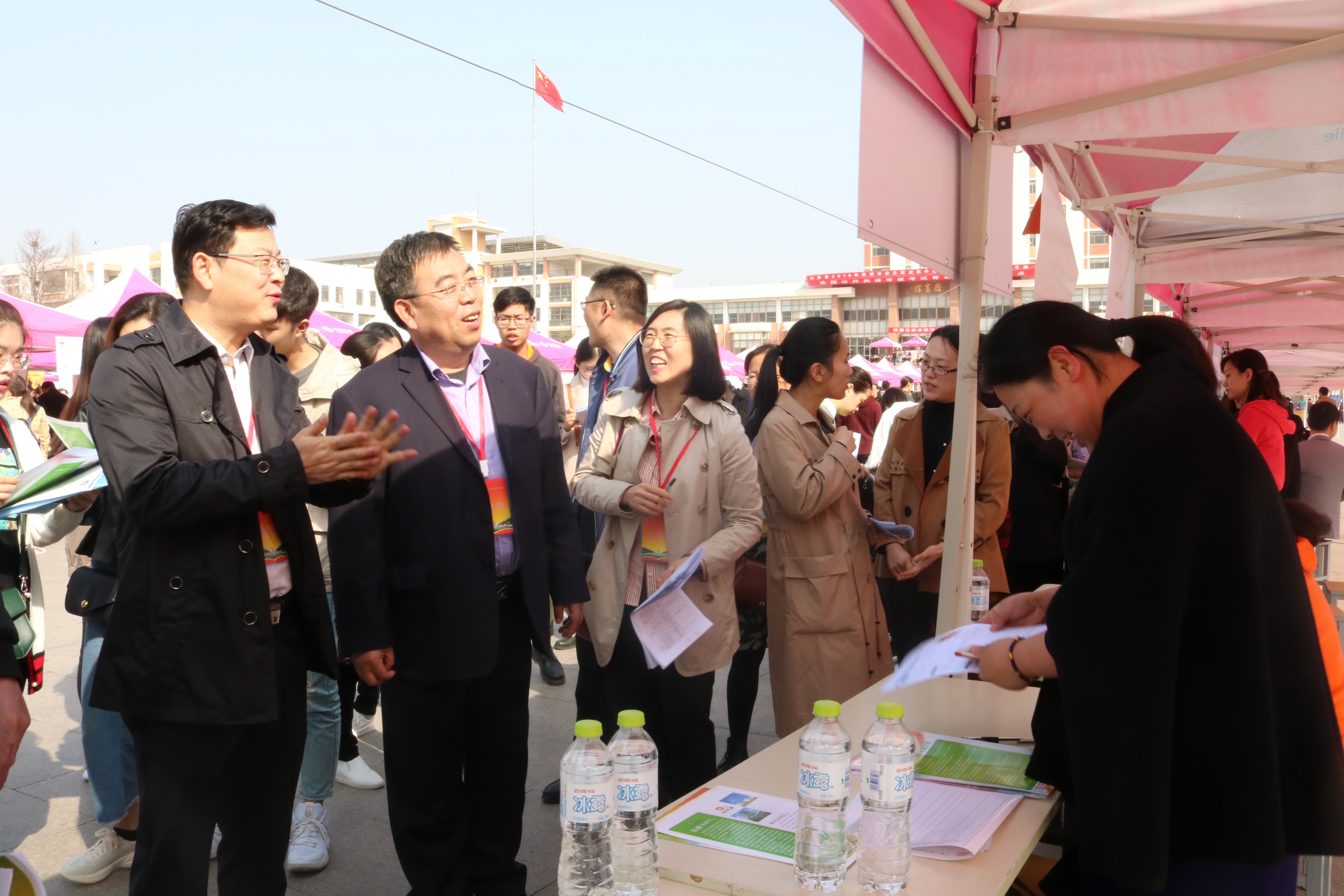 3月31日,365上市公司2018届毕业生大型供需见面会于虹子广场举行。为了解学院专业就业形势,深入与用人单位进行交流,切实做好学院应届毕业生就业工作,英国365上市公司院党政领导、学工办成员及各专业主任到现场指导工作。