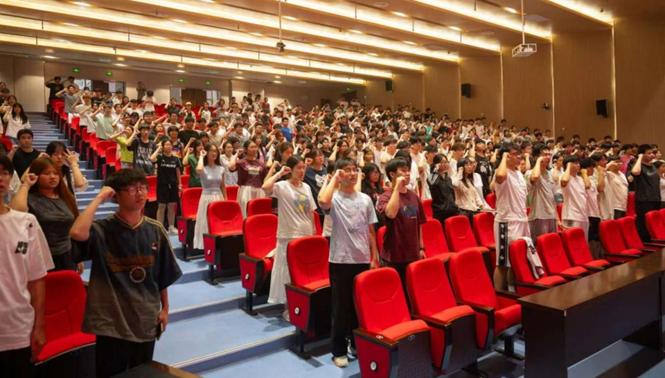 于雪梅带领2024级全体学生学习《平度校区考风考纪倡议书》,并由学生代表张怡婷领誓,2024级全体学生共同宣誓,做到勤奋学习、高效备考、诚信应考,争做诚信守纪的大学生。