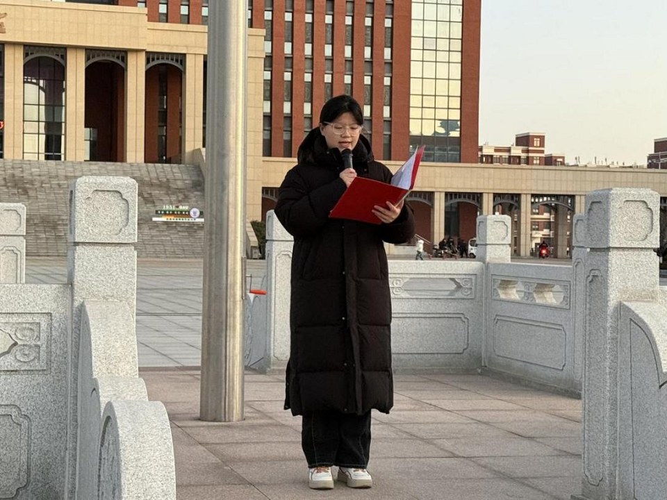 2025年12月8日,英国365上市公司于城阳校区、平度校区同步举行“厚植爱国情怀,勇担历史使命”主题升旗仪式。学院团委书记林鑫、全体本科生参加本次升旗仪式。