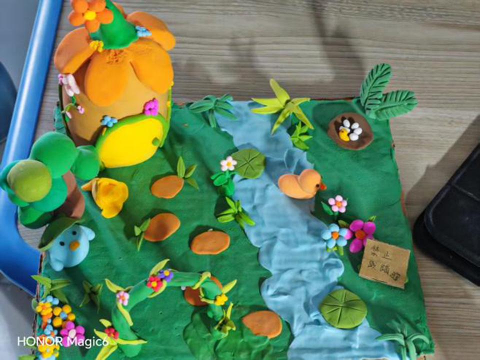 活动结合学院学科特色,将艺术表达、心理调适与生态文明教育三者相融合,引导学生将专业知识转化为艺术作品,在沉浸体验中提升心理韧性。创作要求紧扣五色“土地”与生态主题,同学们在静心创作中学会接纳情绪、释放压力。从揉捏塑形到专注刻画,创作过程中的每一步都是对内在感受的梳理。这份专注不仅锻炼了动手能力,更让同学们在创造美的过程中收获平静与喜悦,在情感抒发中提升情绪管理能力,实现了心理育人与专业教育、环保责任感的有机统一。最后,学院组织专业评审小组,依据艺术性、主题契合度与视频综合展示效果等标准共评选出14份获奖作品,其中,一等奖2名,二等奖4名,三等奖8名。