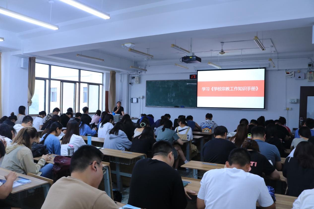 为深入开展社会主义核心价值观教育,培养学生的爱国主义精神,厚植理想信念教育,2023年9月12月,学院团委书记林鑫为2023级全体研究生做“坚定理想信念,牢记爱国情怀”主题讲座。她强调,要时刻牢记习总书记的指示,筑牢理想信念之基,时刻进行补充精神上的“钙”,在三年的研究生生活中活出自我,用理想信念燃烧自我,成就自我。林鑫书记还带领了2023级全体研究生学习了《学校宗教工作知识手册》。