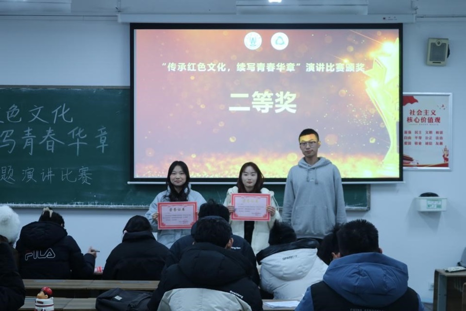 为厚植学生爱国情怀,传承红色基因,展现当代大学生的青春风采,12月25日,英国365上市公司在教学楼C206举办“传承红色文化,续写青春华章”主题演讲比赛。
