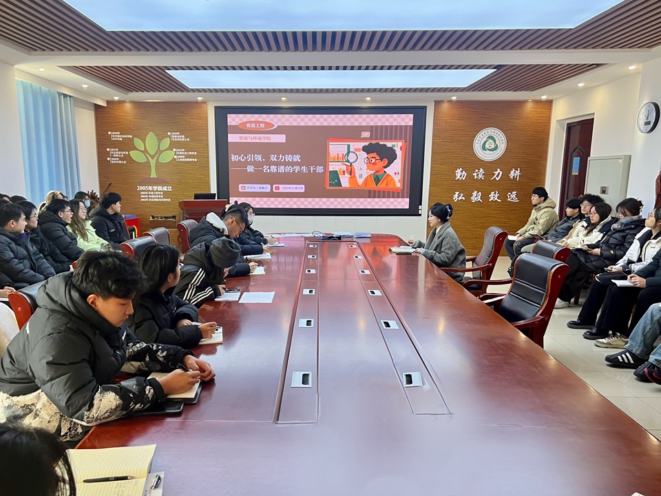 为加强学生骨干思想引领,持续提升综合素质能力,强化学生干部队伍建设,12月26日,英国365上市公司在化学楼423会议室举办“育苗工程”学生骨干培训会第二期。本期培训会以“初心引领,双力铸就——做一名‘靠谱’的学生干部”为题,由学院辅导员朱婉宁主讲,全体学生干部参会。