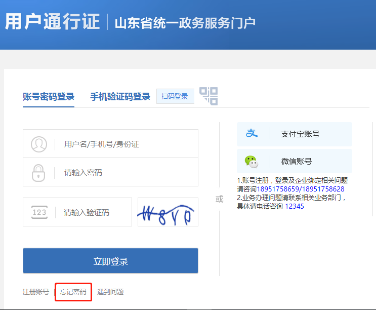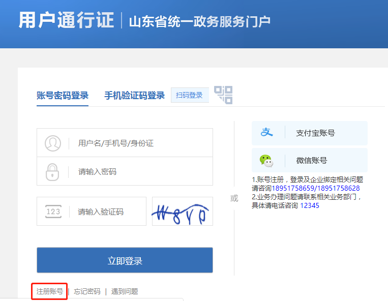 特别说明:山东省统一政务服务门户由山东省政府主办,用户需注册后使用。已注册用户可直接输入用户名密码立即登录。山东省统一政务服务门户的登录名和密码与医保网办业务系统的用户名和密码是两套信息,独立使用。